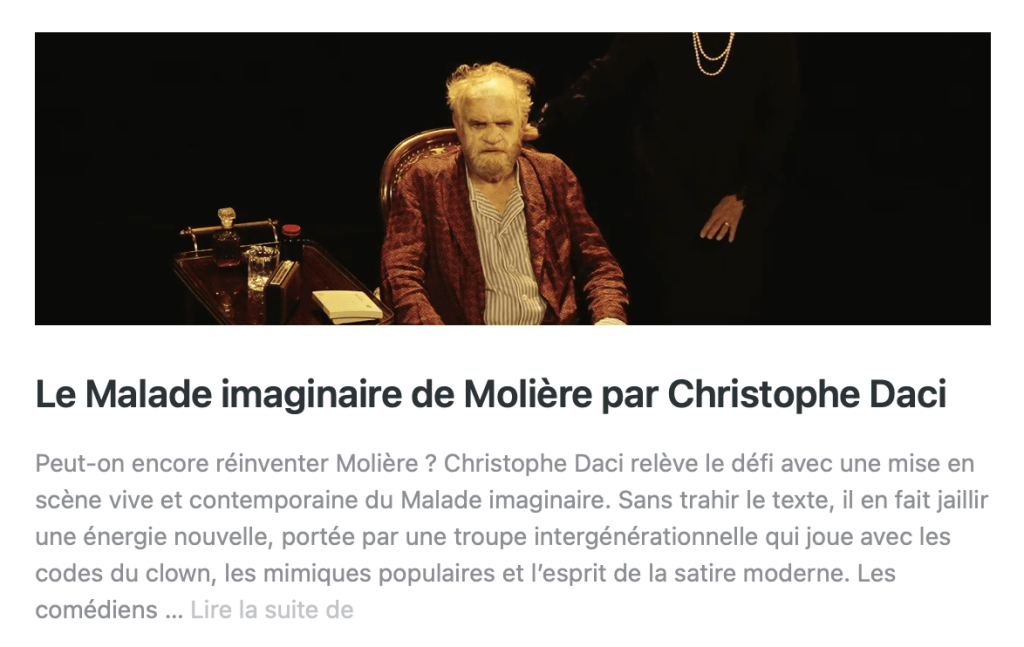 De même que le texte de Molière offre différents niveaux de lecture, je propose dans mon spectacle diverses entrées dans l’univers de cet auteur, afin de parler aux jeunes spectateurs comme au plus aguerris.