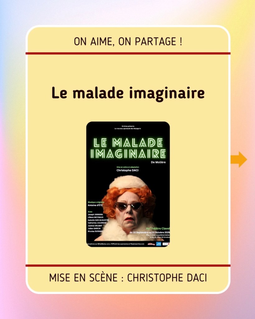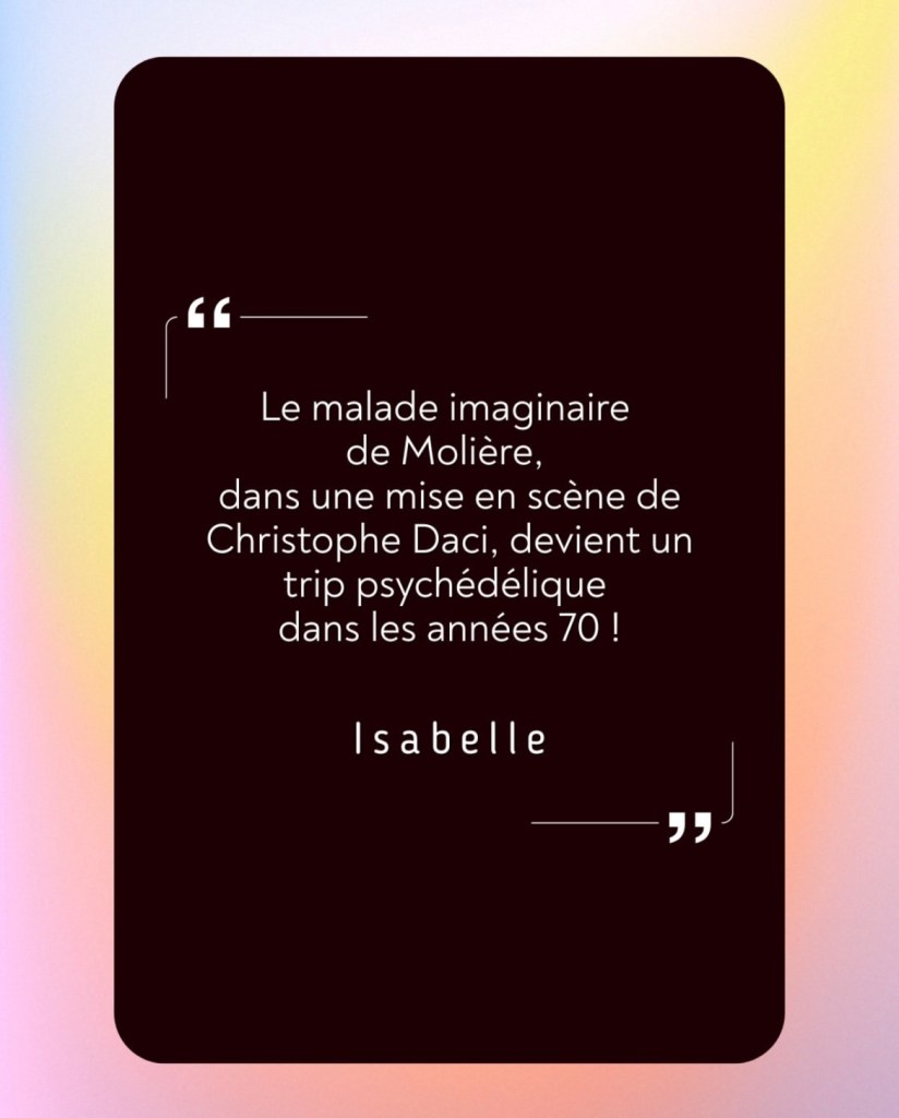 Début des années 70, Argan, riche bourgeois hypocondriaque, s’est mis en tête de marier sa fille Angélique à un médecin. Cette dernière, amoureuse du jeune Cléante, s’y refuse au risque d’être envoyée dans un couvent. Béline, tyrannique marâtre, attise le conflit dans l’espoir de capter la fortune d’Argan.